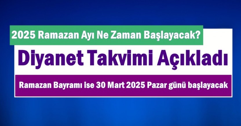 Diyanet İşleri Başkanlığı, 2025 yılı Ramazan Ayı'nın 1 Mart'ta başlayıp 29 gün süreceğini ve Ramazan Bayramı'nın 30 Mart'ta başlayacağını duyurdu.