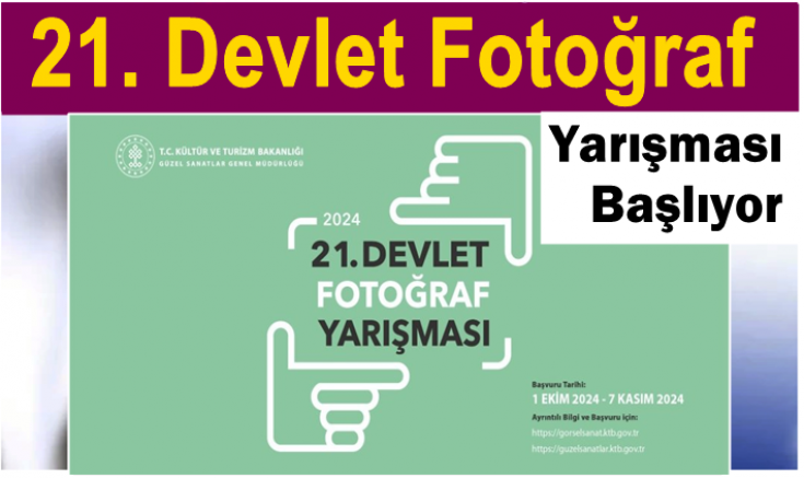 Kültür ve Turizm Bakanlığınca, fotoğraf sanatçılarının çalışmalarını destekleme, ülkemizin doğal güzelliklerini ve kültürel mirasını belgelemek, arşivlemek ve gerektiğinde uluslararası platformlarda da sergilemek amacıyla “İnsan ve Yaşam”, “Tarihi Mekanlar ve Mimari Eserler” ile “Tabiat ve Doğal Hayat” kategorilerinde 21. Devlet Fotoğraf Yarışması düzenlenecektir.