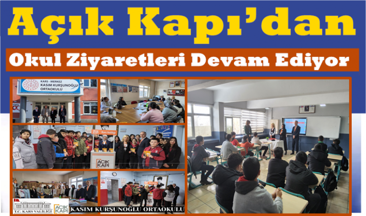 Açık Kapı çalışmalarını anlatmak, yönetici, öğretmen ve öğrencilerle ortak sosyal projeler oluşturmak amacıyla yapılan ziyaretler kapsamında Kasım Kurşunoğlu, Mihralibey, Fevzi Paşa Ortaokulları ile Atatürk Kız Mesleki ve Teknik Anadolu ve Kars Anadolu İmam Hatip Liseleri ziyaret edilerek öğrencilerle bir araya gelindi.