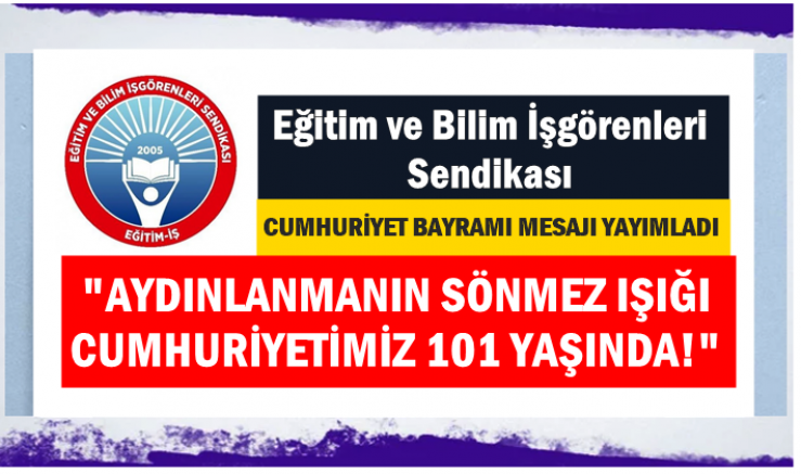 Eğitim ve Bilim İşgörenleri Sendikası Genel Merkezi; "AYDINLANMANIN SÖNMEZ IŞIĞI CUMHURİYETİMİZ 101 YAŞINDA!"