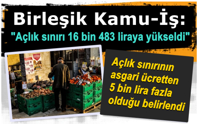 Birleşik Kamu-İş Konfederasyonu, açlık sınırının 16 bin 483 liraya, yoksulluk sınırının ise 46 bin 837 liraya yükseldiğini açıkladı.