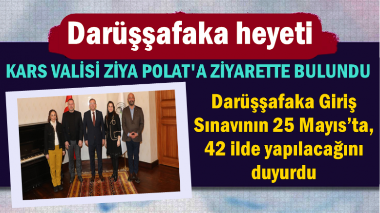 Kars Valisi Ziya Polat’ı da ziyaret eden Darüşşafaka heyeti, Darüşşafaka Giriş Sınavının 25 Mayıs’ta, 42 ilde yapılacağını duyurdu.