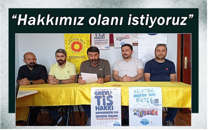 Eğitim Sen Kars Şubesi Yürütme Kurulu tarafından yapılan basın açıklamasında, “Hakkımız olanı istiyoruz” denildi.