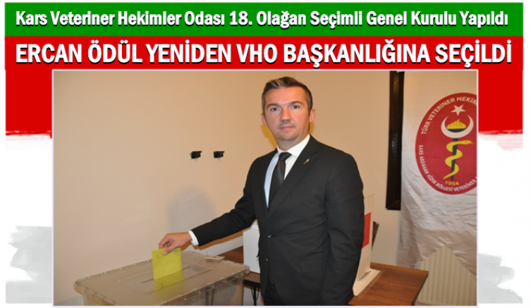 Kars Veteriner Hekimler Odası'nda saat 09.00'da başlayan 18. Olağan Genel Kurulu'nda saat 17.00'de sandıklar kapandı. 3 dönemdir başkanlık görevini yürüten Ercan Ödül tek liste olarak seçime girdi.