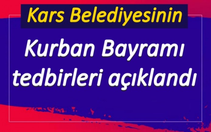 Kars Belediyesinden yapılan açıklama şöyle: "Alınan tedbirler kapsamında şehir merkezi ve mahallelerimiz başta olmak üzere tüm cadde, sokak, yol ve kaldırımlarda mıntıka ve temizlik çalışması ile mezarlıklar ve park-bahçelerde bakım ve genel temizlik çalışmaları devam etmektedir. Belirlenen kurban kesim yerleri haricinde umuma açık ve kesime uygun olmayan yerlerde kurban kesimi yapılmayacak olup Zabıta Müdürlüğümüz gerekli tedbirleri alacaktır. Kurban Bayramı süresince kurban atıkları belediyemiz ekiplerince en kısa sürede toplanarak katı atık depolama alanına nakledilip uygun şekilde bertaraf edilecektir. Kurban Bayramı boyunca belediyemiz hizmetlerine ilişkin tüm istek ve şikâyetler 153 numaralı Alo Zabıta hattından alınarak gereği yerine getirilecektir. Kurbanlıklarını kesecek vatandaşlarımızın dini vecibelere, sağlık (Hijyen) şartlarına ve çevre temizliğine uygun bir şekilde hayvanlara eziyet vermeden kurbanlarını kesmelerini dilerken, halkımızın şimdiden Bayramlarını sağlık ve mutluluk içinde geçirmelerini diliyoruz."