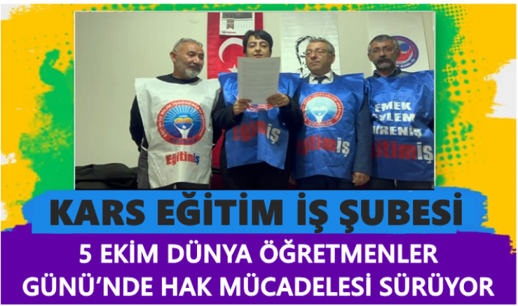 Kars Eğitim İş Sendikası Kars Şubesi 5 Ekim Dünya Öğretmenler Günü dolayısıyla basın açıklaması yaptı.