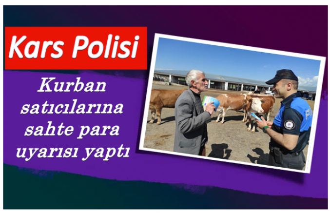 Kars İl Emniyet Müdürlüğü Toplum Destekli Polislik Şube Müdürlüğü ekipleri, yaklaşan Kurban Bayramı dolayısıyla hayvan pazarında sahte para olaylarını önlemek amacıyla “Kurbanlık Alışverişlerinde Sahte Para ve Dolandırıcılara Dikkat Edelim” sloganıyla çalışma başlattı.