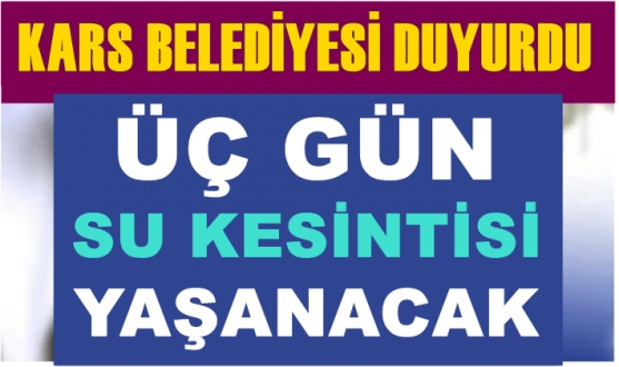 Kars Belediyesi’nden yapılan açıklamada şöyle : “Şehrimizin içme suyu arıtma tesisinde yapılacak olan planlı bakım-onarım ve temizlik çalışmaları nedeniyle, 6-7-8 Ağustos 2024 tarihlerinde şehir genelinde su kesintisi yaşanacak olup bu süreçte içme suyu şebeke hattına belirli periyotlarda su verilecektir.”