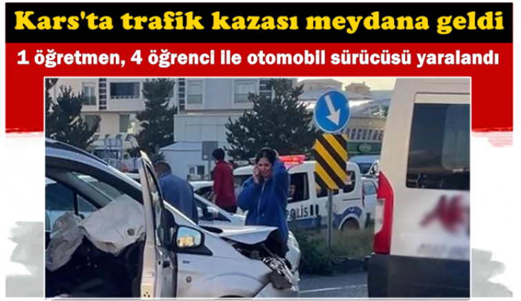 Kars'ta öğrenci servis aracı ile özel otomobilin çarpışması nedeniyle meydana gelen kazada 4'ü öğrenci 6 kişi yaralandı. M.Ç, idaresindeki 36..128 plakalı otomobil, Yenişehir Mahallesi Ali Gaffar Okkan Bulvarı üzerinde bulunan kavşaktan dönmeye çalışan M.E., yönetimindeki 36 S plakalı öğrenci servis aracı çarpıştı.