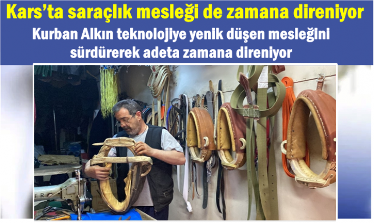 Kars Yusufpaşa Mallesi Küçük Kazımbey Caddesinde 35 yıldır saraçlık mesleğini yürüten Kurban Alkın teknolojiye yenik düşen mesleğini sürdürerek adeta zamana direniyor.