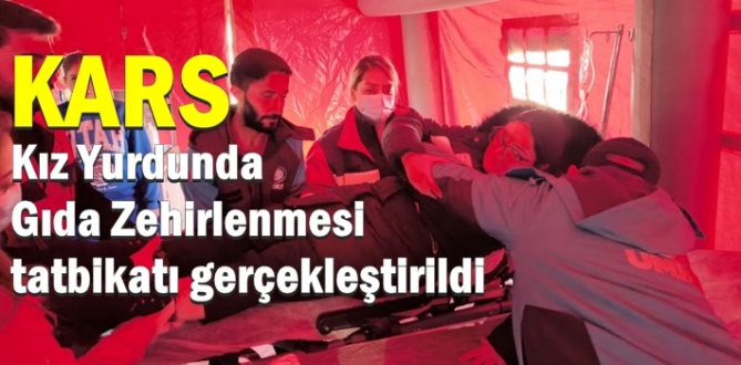 Kars’ta İl Sağlık Müdürlüğü Acil Sağlık Hizmetleri Başkanlığı koordinesinde, Ulusal Medikal Kurtarma Ekibi (UMKE), Afet ve Acil Durum İl Müdürlüğü (AFAD), 112 Acil Servis, Emniyet Müdürlüğü ve Harakani Devlet Hastanesi'nden 150 personelle düzenlenen "Gıda Zehirlenmesi" tatbikatında senaryo gereği, Kars'ta kız yurdunda gıda zehirlenmesi ihbarı 112 Acil Komuta Merkezi’ne ulaştı. 20 öğrencinin yaralandığı ihbar üzerine Harakani Devlet Hastanesi'nin 'Olay yönetim ekibi' göreve hazır hale getirildi.