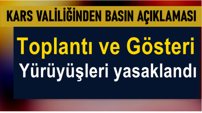 Kars Valiliği 4 gün boyunca il genelinde açık alanlarda yapılmak istenilen (toplanma, yürüyüş, basın açıklaması, açlık grevi, oturma eylemi, miting, stant açma, çadır kurma, bildiri/broşür dağıtma, afiş/pankart asma vb.) her türlü eylemin yasaklandığına dair Basın Açıklaması yaptı.