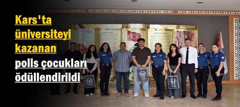 Kars İl Emniyet Müdürlüğü, görevli personelin üniversiteyi kazanan çocuklarını unutmadı. Üniversite sınavında başarı göstererek yükseköğretim kurumlarına yerleşen gençler, aileleriyle birlikte Emniyet Müdürlüğü'ne davet edilerek ödüllendirildi.