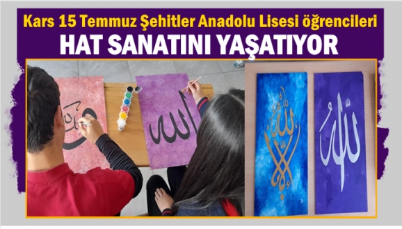 Kars 15 Temmuz Şehitler Anadolu Lisesi öğrencileri Görsel Sanatlar Öğretmeni Mehmet Doğan rehberliğinde geleneksel Türk el sanatlarından biri olan hat sanatını yaşatıyorlar.