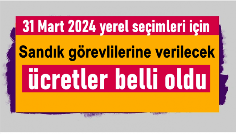 31 Mart 2024 yerel seçimleri için sandık görevlilerine ödenecek ücretler belirlendi. Yüksek Seçim Kurulu'nun açıklamasına göre, seçimde görev alacak kişilere verilecek ücretler şu şekildedir: