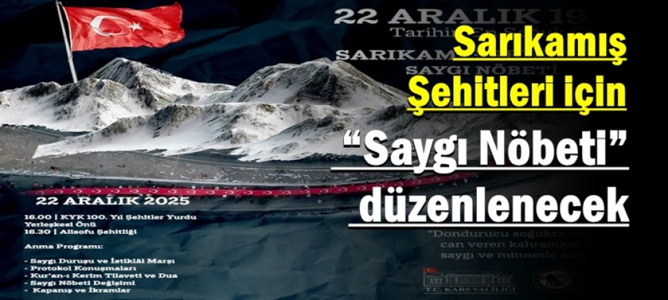 Tarihin en soğuk günlerinden biri olarak kayıtlara geçen 22 Aralık 1914’ün yıl dönümünde düzenlenecek Sarıkamış Şehitleri Saygı Nöbeti, 22 Aralık 2025 Pazartesi günü yapılacak.