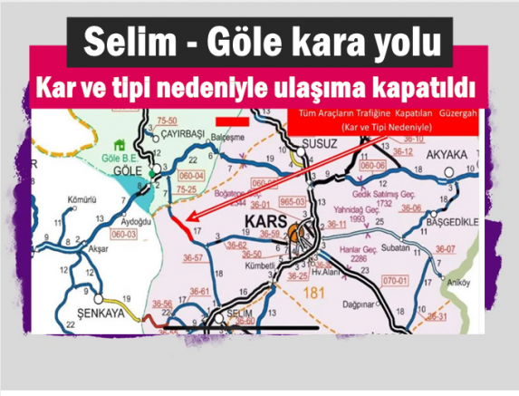 Karayolları 18. Bölge Müdürlüğü'nden alınan bilgilere göre; "'Kış Programında Mücadele Dışı Yollar' kapsamında bulunan 36-57 K.K. No’lu Selim-Göle Yolumuzun Km:7+000-15+000 arası kesim (Allahuekber Dağı Geçidi) yoğun kar ve tipi nedeniyle 13.12.2024 tarihi saat 17:30 itibariyle tüm araçlar için trafiğine kapatılmıştır." denildi.