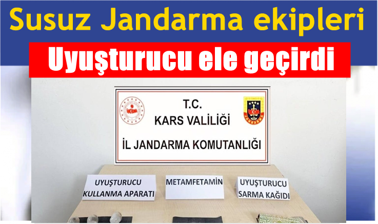 Kars İl Jandarma Komutanlığı’nca uyuşturucu madde ticareti yapan kişilere yönelik çalışmalar aralıksız devam ediyor. Kars’ın Susuz ilçesinde Ardahan Yolu Kayalık köyü girişinde yapılan yol kontrolünde durumundan şüphelenilen bir otomobil durduruldu. T.S.’nin kullandığı araçta yapılan aramada, 10 gram Metamfetamin, 3 adet uyuşturucu madde kullanma aparatı, 2 paket uyuşturucu sarma kağıdı, ele geçirilerek muhafaza altına alındı. Olayla ilgili olarak şüpheli T.S. gözaltına alınarak Jandarma Komutanlığı’na getirildi. Susuz Cumhuriyet Başsavcılığına bilgi verilerek yasal işlemleri yapılan T.S. daha sonra serbest bırakıldı.