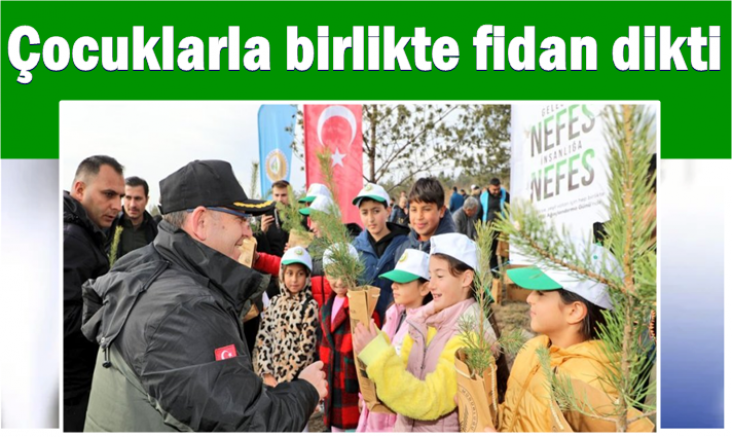 Vali Polat, çocuklarla birlikte fidan dikti