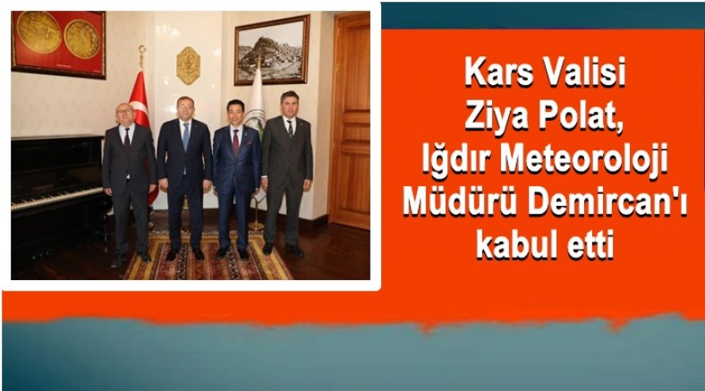 Kars Valisi ve Belediye Başkan Vekili Ziya Polat, Iğdır Meteoroloji 16. Bölge Müdürü Mesut Demircan, Bölge Müdür Yardımcısı Zekeriya Domaç ve Kars Meteoroloji Müdürü Seyit Ahmet Yıldız'ı makamında kabul ederek, kurumun çalışmaları ile ilgili bilgi aldı.