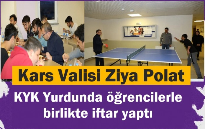 Birinci Önceliğimiz Eğitim diyen Kars Valisi Belediye Başkan Vekili Ziya Polat, Kredi ve Yurtlar Kurumu (KYK) Kars İpek Yolu Erkek Öğrenci Yurdu'nda kalan öğrencilerle iftarda bir ara geldi. Kars'ta, eğitim öğretime büyük önem veren, haftanın en az üç gününüde eğitim kurumlarına ziyaret düzenleyip, öğrenci ve idareciler ile bir araya gelen, Kars'ta, eğitim kurumlarına, öğrencilere her türlü destek ve imkanın sunulması adına adeta tüm kurumları seferber eden Vali Belediye Başkan Vekili Polat üniversite öğrencileriylede biraraya geliyor.