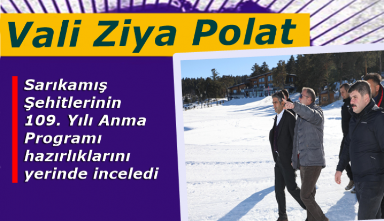 Kars Valisi ve Belediye Başkan Vekili Ziya Polat, 5-7 Ocak 2024 tarihlerinde yapılacak olan “Türkiye Şehitleriyle Yürüyor” Sarıkamış Şehitlerinin 109. Yılı Anma Programı hazırlıklarını yerinde inceledi.