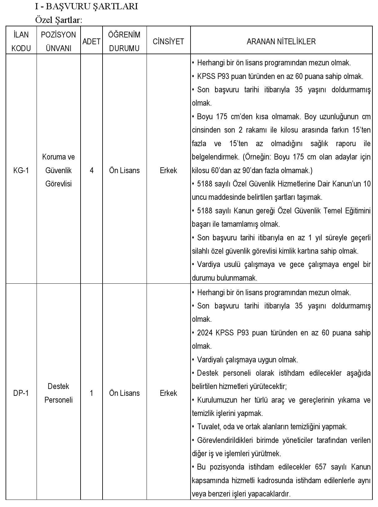 Güvenlik soruşturması ve sağlık raporu şartı bulunuyor