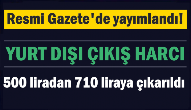 Resmi Gazete'de yayımlanan düzenleme ile yurt dışı çıkış harcı 500 liradan 710 liraya çıkarıldı. Yeni tarife 1 Ocak 2025 itibarıyla geçerli olacak.